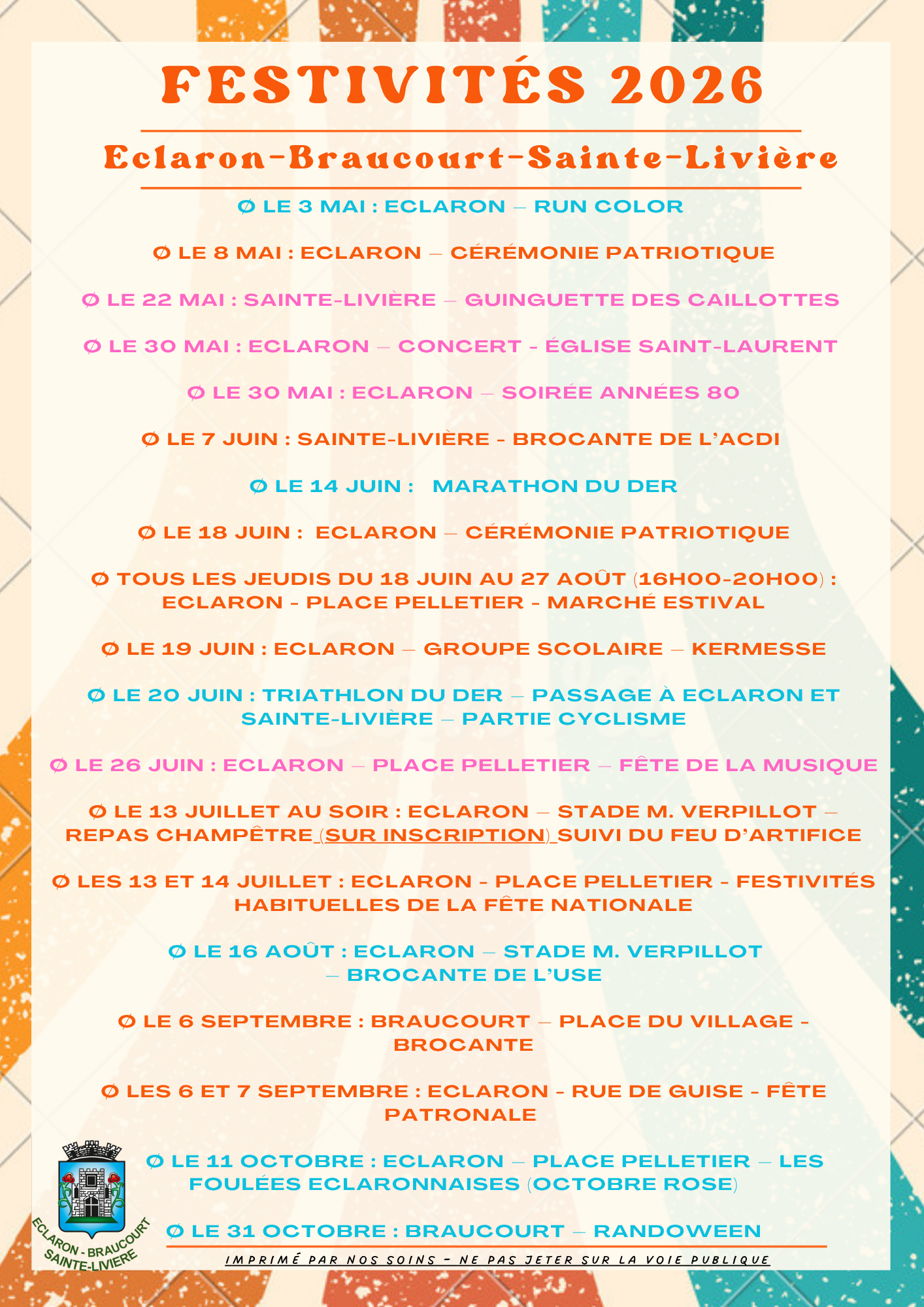 Voici le calendrier des manifestations estivales 2026 de nos villages et alentours...